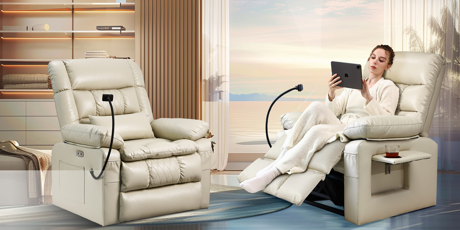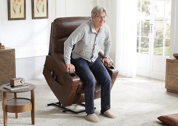 This power recliner can be adjusted to maximum angle of 175° with an easy-to-use remote control, and the lift recliner's counterbalanced lifting mechanism gently raises the chair to help seniors stand without taxing their knees or backs.