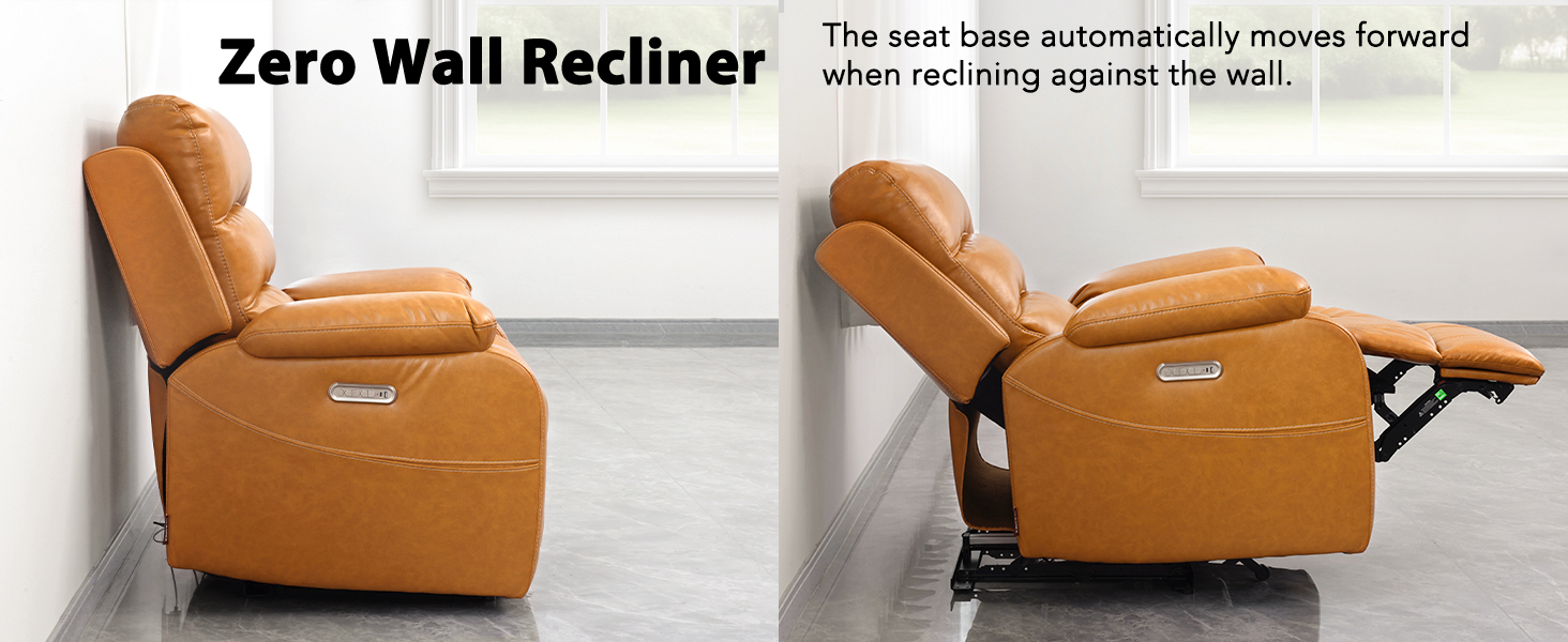 Real Zero Clearance Wall Hugger Recliners, Power RV Recliner Chairs for Small Spaces, Dual Motor Home Theater Recliners with Massage and Heat, Breathable Leather, SXXY003992, Dark Brown