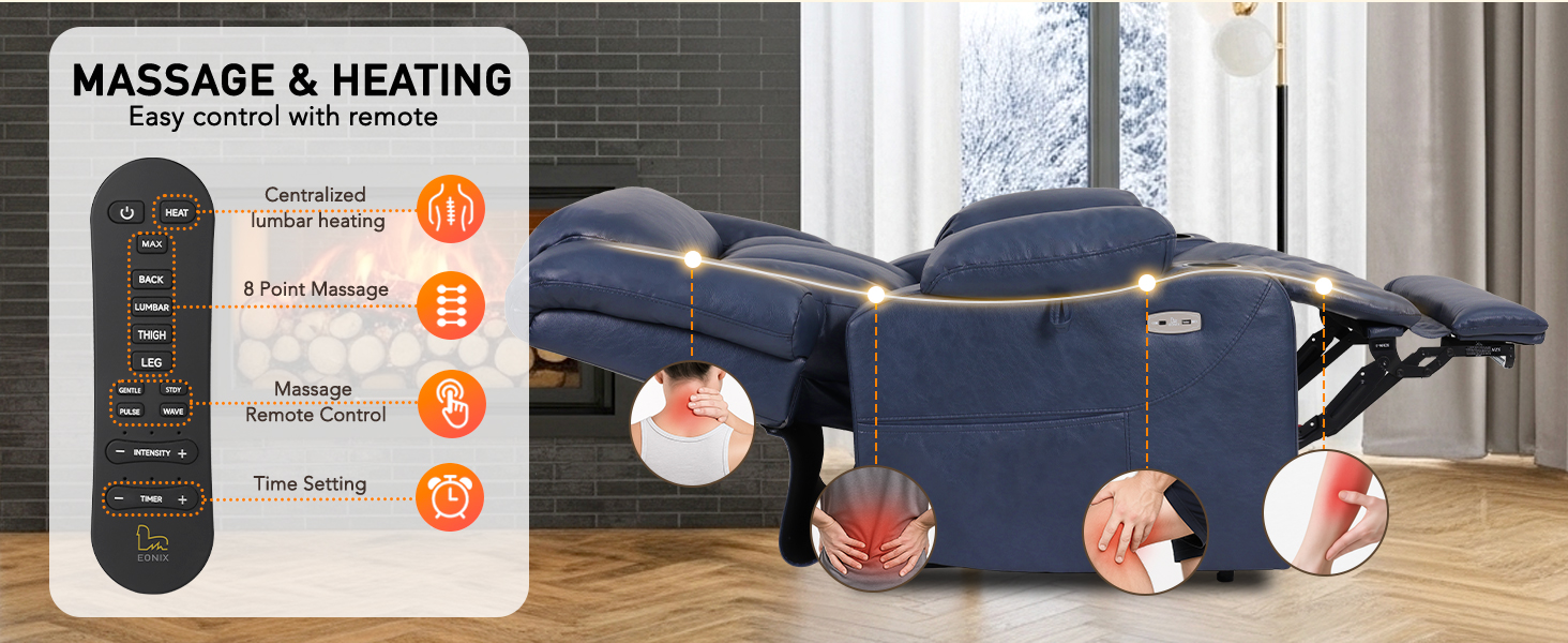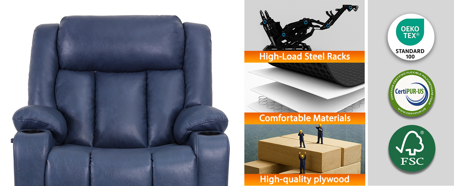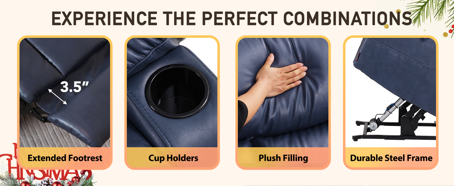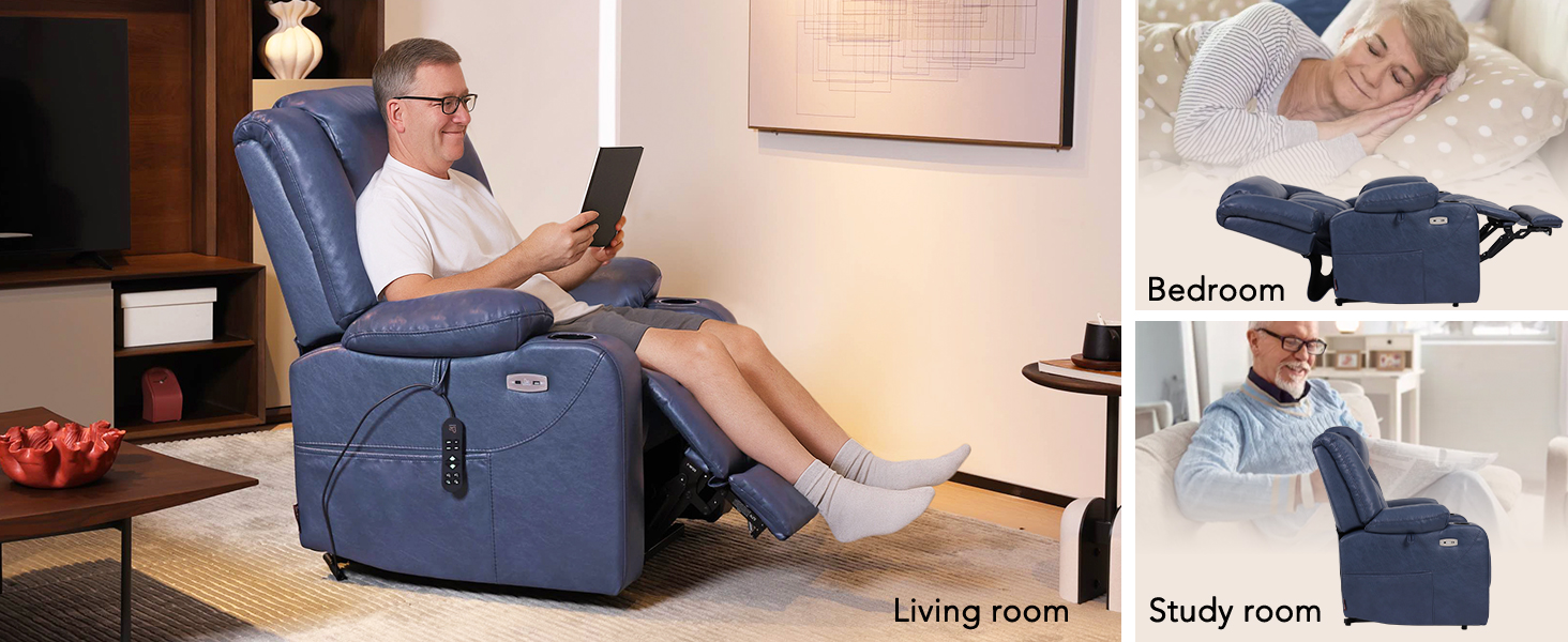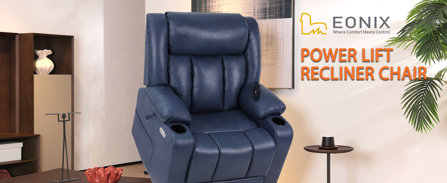 Dual Motor Oversized Power Lift Recliner Chair for Elderly, 400lbs Heavy Duty Faux Leather Recliner with Massage and Heat, Big and Tall Lay Flat Lift Chair with Cup Holders, SLRY006, Navy Blue