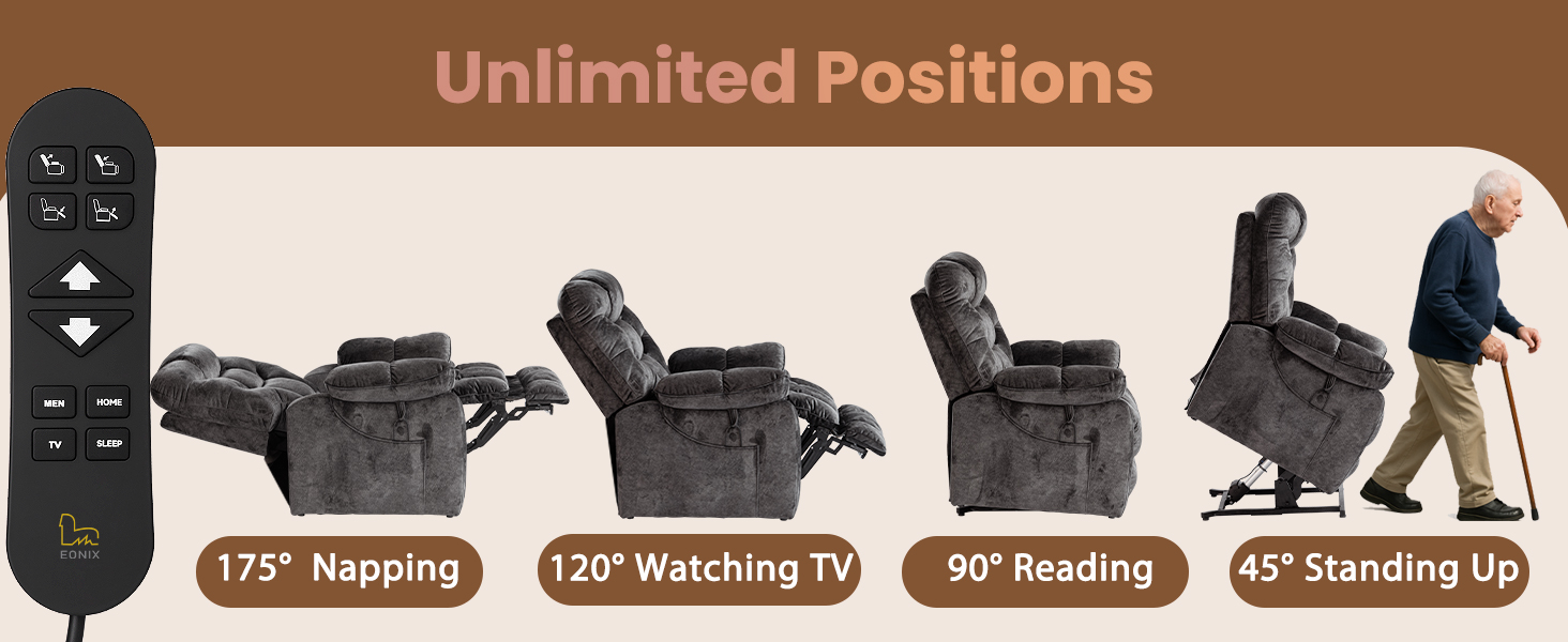 Large Lay Flat Power Lift Recliner Chair for Elderly